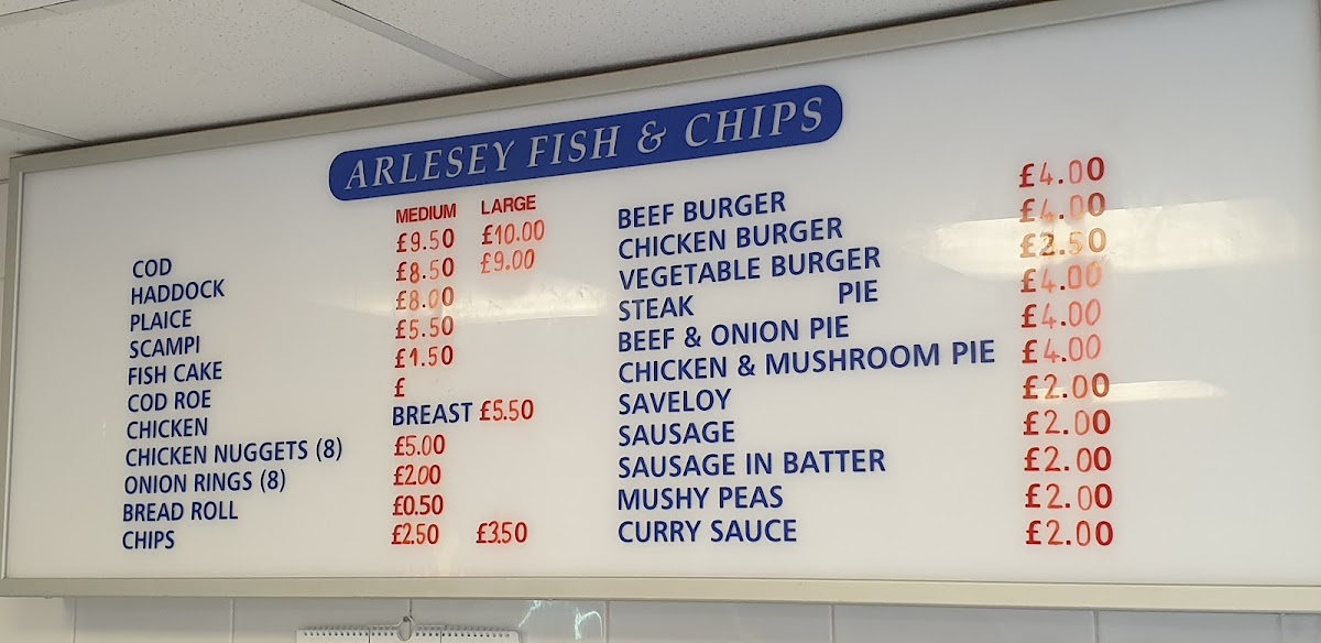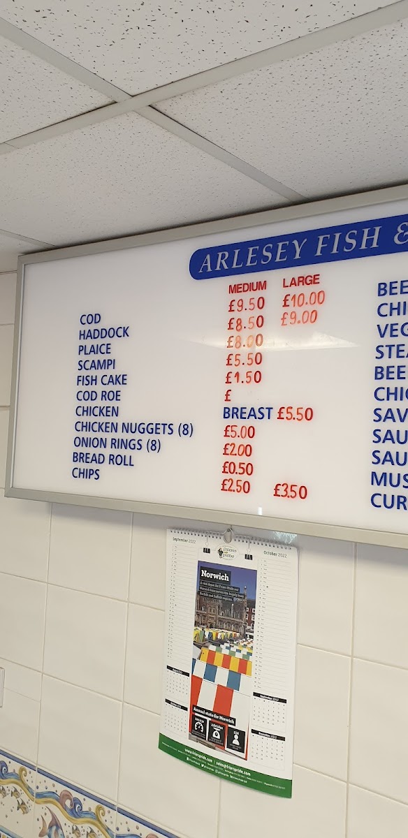 Introducing the menu at Arlesey Fish & Chips, located at 9 High St, Arlesey, is a delightful journey into classic British cuisine. Renowned for its exceptional fish and chips, this establishment prides itself on serving fresh, generously portioned dishes. The menu features a variety of options, including large cod that customers rave about for its impeccable taste.